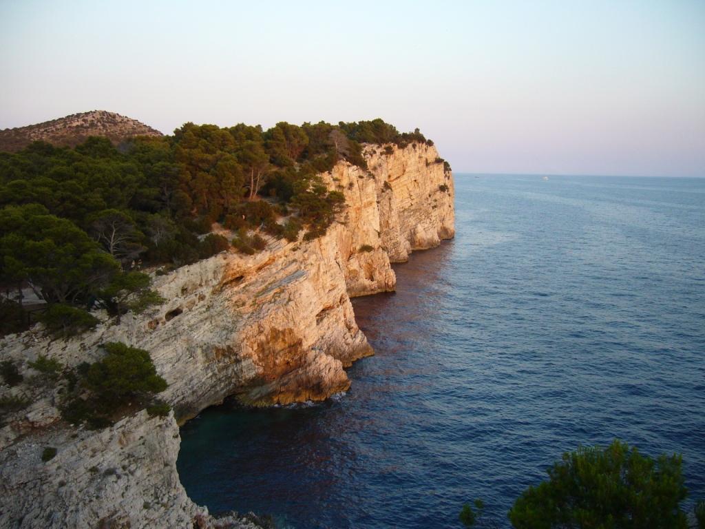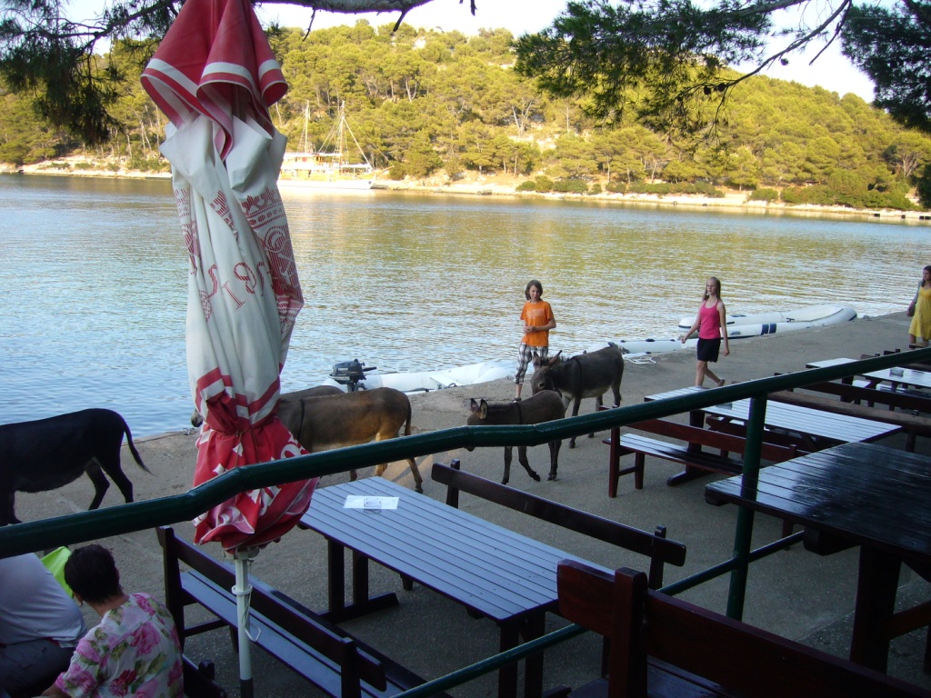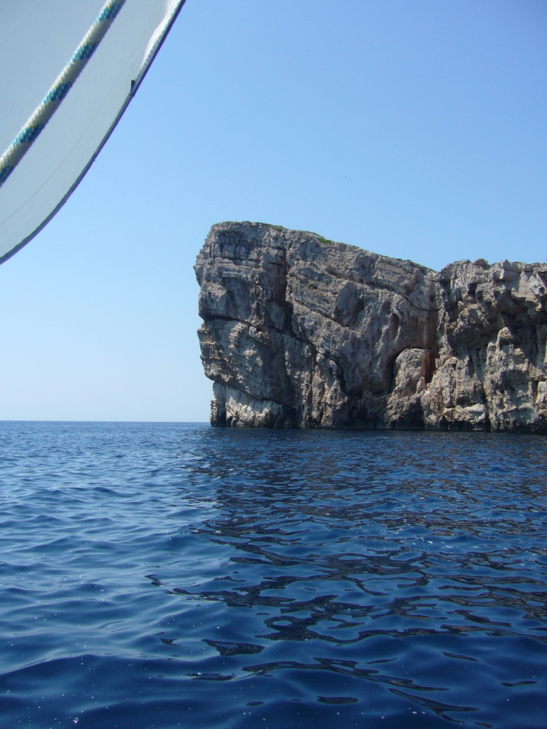 Wychodzimy pod osłoną nocy na motorze tak, aby rano być na wysokości Kornat i dopłynąć do Parku Narodowego Teleścica. Morze jest spokojne, silnik równo pracuje pokonując kolejne Mm. Świt przynosi zapierający dech w piersiach widok – szmaragd morza i surowość skał archipelagu Kornat. Pionowe skały są niemal na wyciągniecie ręki. Przepływamy sobie spokojnie koło nich idąc na żaglach i zastanawiając się nad siłą natury, która „maluje” takie obrazki. Nocna żegluga wyczerpująca dla niektórych członków załogi kończy się postojem i tradycyjna kąpielą U Tratinska. Jest to piękna, jedna z wielu zatok PN Teleścica. Tam planujemy się zatrzymać na ostatnią noc na morzu, następnego dnia musimy zameldować się w marinie. Udaje nam się znaleźć boję, która będzie naszym portem do dnia następnego. Cumujemy w centrum parku narodowego, miejsce zwie się U Mir. Po klarze portowym i przygotowaniach do wyjścia przypływają parkowi strażnicy, pobierają opłatę 300 kun i życzą nam „have a fun”. Z takim też zamiarem udajemy się na ląd naszym niezawodnym dinghy. W planach jest zwiedzanie tej nietypowej wyspy. Jest ona, bowiem położona w niezwykły sposób: z jednej strony zatoka a na przeciwstawnym brzegu klif wysokości kilku dobrych pięter. Jakby tego było mało w środku wyspy znajduje się słone jezioro, dawno temu część morza odcięta wskutek zmian geologicznych skałami. Dodatkowo po wyspie „grasują” osły, które potrafią capnąć swymi siekaczami – ostrożnie z głaskaniem!