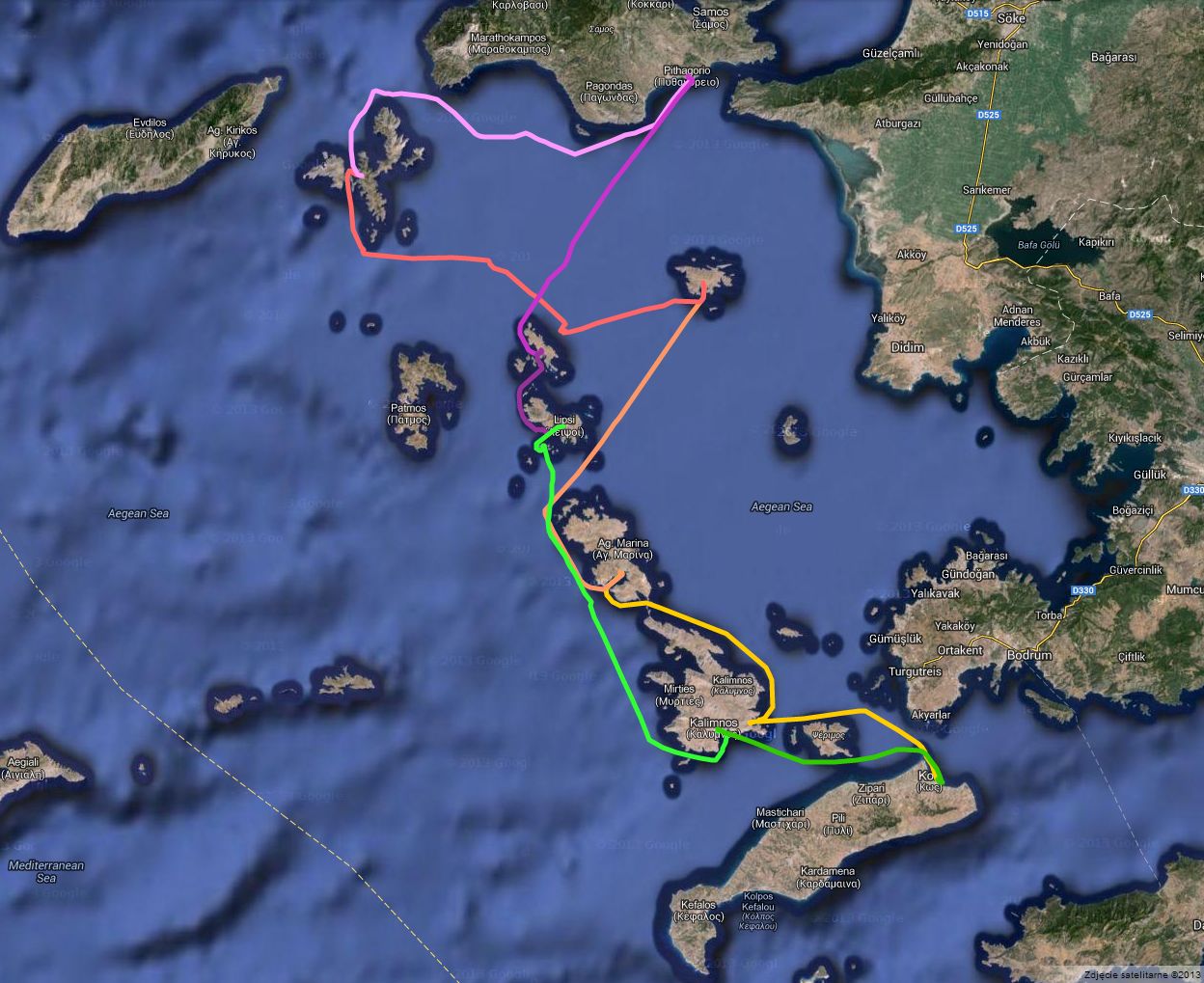 W trakcie rejsu pokonaliśmy następującą trasę: KOS – LEROS – AGATHONISI – FOUMI – SAMOS(PITHAGORIO) – SAMOS – ARKOI – LIPSI – MAKRONISI – KALIMNOS – KOS