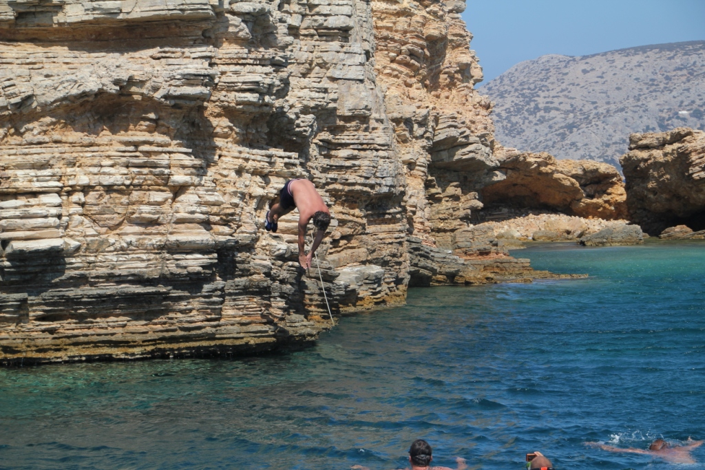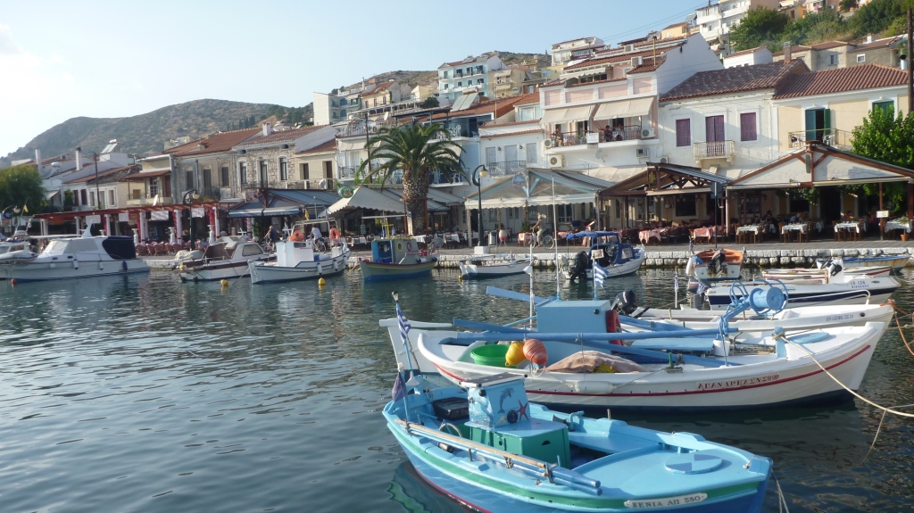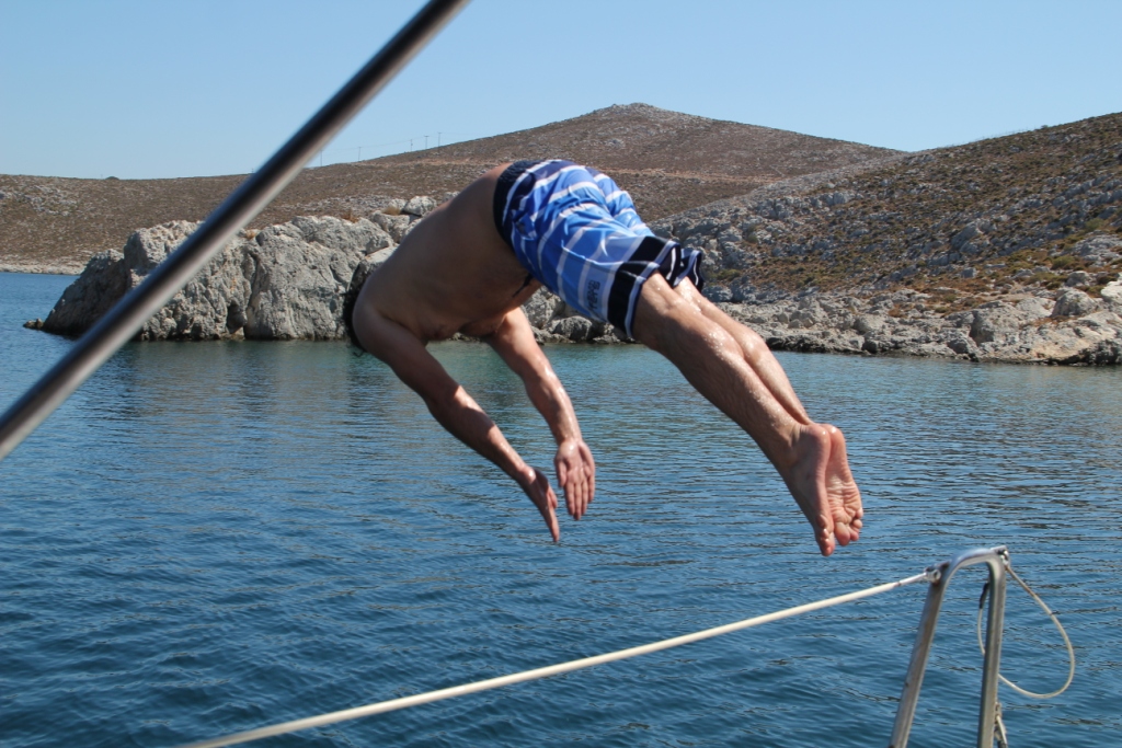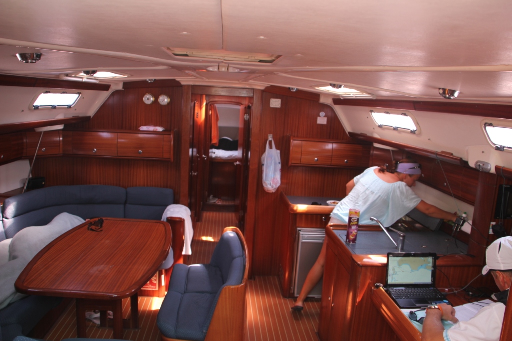 Pływaliśmy sprawdzonym jachtem BAVARIA 49 (długość 15.4m, szerokość 4.46m). Jednostka duża, komfortowa, ergonomiczna, w miarę szybka. Swoją ogromną popularność zawdzięcza dobremu stosunkowi wielkość/jakość/cena. Cumowaliśmy – jak to w Grecji – na kotwicy, rufą do betonowego nabrzeża. Infrastruktura oprócz wody i prądu praktycznie żadna. Ma to jednak swój klimat. Przy obecnym wyposażeniu jachtów jesteśmy samowystarczalni i jeśli mamy dostęp do wody i prądu nic nam więcej nie potrzeba.
