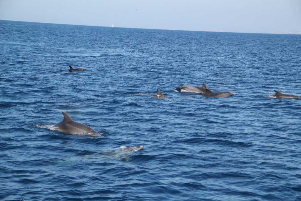 Rejs miał charakter turystyczny, stąd nie staraliśmy się zbytnio „napinać”. Żeglowaliśmy wyłącznie w porach dziennych po drodze zaliczając obowiązkową kąpiel w morzu, tak aby przed zmrokiem zaparkować i spokojnie udać się na zwiedzanie wyspy. Tradycyjnie wieczory kończyliśmy długą biesiadą w knajpkach rozkoszując się lokalnymi specjałami. Dobierając trasę założyłem poznanie nowych, wcześniej nie odwiedzonych miejsc. Nie posiadając bezpośrednich rekomendacji, posiłkowałem się literaturą i Internetem, a efekt przerósł oczekiwania. Wszystkie bez wyjątku miejsca są godne polecenia. Tradycyjnie, najmniejsze wyspy zrobiły największe wrażenie. Mieliśmy szczęście i w jednej z zatoczek w której zatrzymaliśmy się na kąpiel w morzu, spotkaliśmy stado delfinów. Przez ponad godzinę prowokowaliśmy je skutecznie do zabawy pływając jachtem w ich kierunku, by po chwili mieć na wyciągnięcie ręki kilkadziesiąt sztuk przy jachcie. To zdecydowanie najciekawsze spotkanie z delfinami w moim życiu.