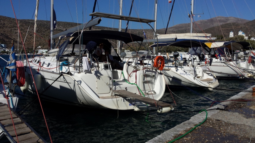 Grecja to wspaniale miejsce na rejs rodzinny, choć niekoniecznie z małymi dziećmi. Infrastruktura portowa jest w większości raczej surowa. Nowoczesnych marin jest nadal bardzo niewiele (dla mnie to zaleta). W większości to miejskie przystanie z betonowym nabrzeżem. Stajemy zwykle na kotwicy dziobowej rufą do brzegu. Czasami along side, choć raczej należy tego unikać ze względów bezpieczeństwa. Wyspy greckie są doskonale skomunikowane za pomocą licznych promów. Do każdej, nawet najmniejszej zaludnionej wyspy, co najmniej raz dziennie przypływa statek dostarczając niezbędne zaopatrzenie, jednocześnie przewożąc ludzi do pracy i z powrotem. Promy parkują często przy tych samych nabrzeżach, co inne jednostki, w tym nasza. Należy bezwzględnie brać to pod uwagę zabezpieczając jacht przed dużym falowaniem. Oczywiście wskazana jest obecność na jachcie podczas manewru promu, zwłaszcza w przypadkach, gdy odbywa się to bardzo blisko nas. Na prysznice w porcie nie należy liczyć. Za to nigdzie nie ma problemu z zatankowaniem wody, a często też paliwa. Powszechne są cysterny, które po telefonicznym wezwaniu podjeżdżają do jachtu na umówioną godzinę. Woda jest stosunkowo tania, a odległości miedzy wyspami na tyle małe, że można komfortowo korzystać z niej swobodnie na jachcie. Zwykle nie jest również problemem podłączenie jachtu do prądu, a ceny też nie powalają. Generalnie pod względem opłat, Grecja to obecnie najtańszy akwen. Możliwość cumowania w miejskich przystaniach ma tę zaletę, iż jesteśmy w samym centrum i mamy wszędzie blisko. Na małych wyspach nie ma problemu z hałasem, czy poczuciem bezpieczeństwa. Na większych warto brać już pod uwagę te względy, choć osobiście nie mam złych doświadczeń w temacie bezpieczeństwa.