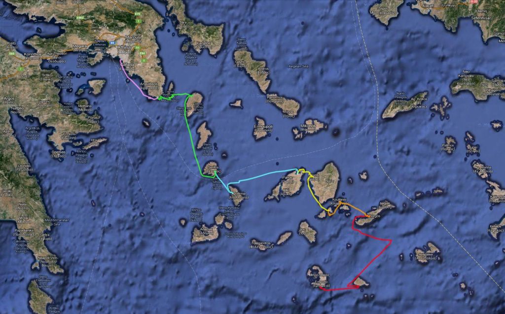 Odwiedziliśmy w kolejności: Santorini, Anafi, Amorgos, Kuofonissi, Schinousa, Naxos, Paros, Sifnos, Serifos, Kea, zat. Souniou (pod świątynią Posejdona), Ateny – marina Kalamaki w Pireusie. Tak jak zakładaliśmy, największe wrażenie robiły na nas mniejsze wyspy. Urzekał wszechobecny spokój i cisza. Jednocześnie otaczały nas intensywne kolory dostarczając niecodziennych widoków potęgując naszą radość życia.