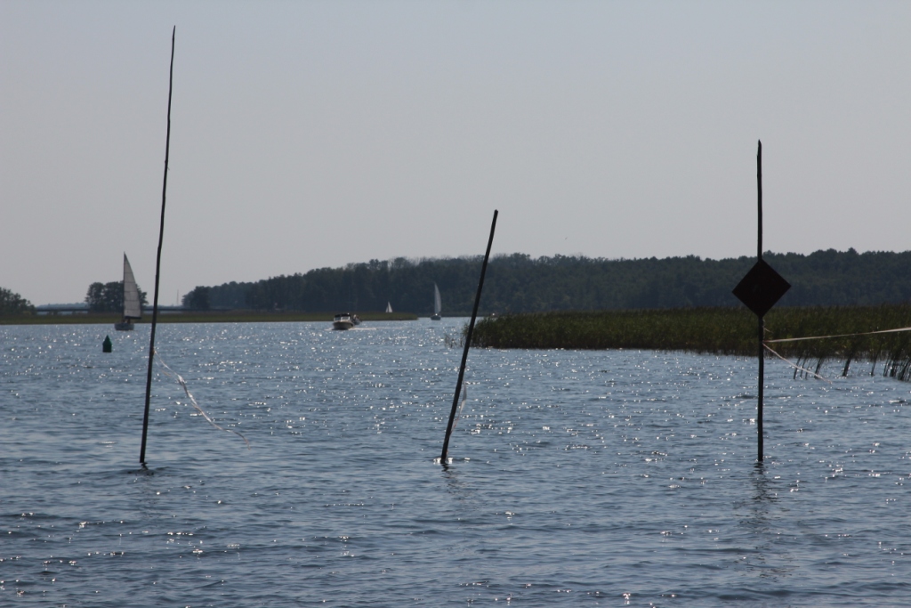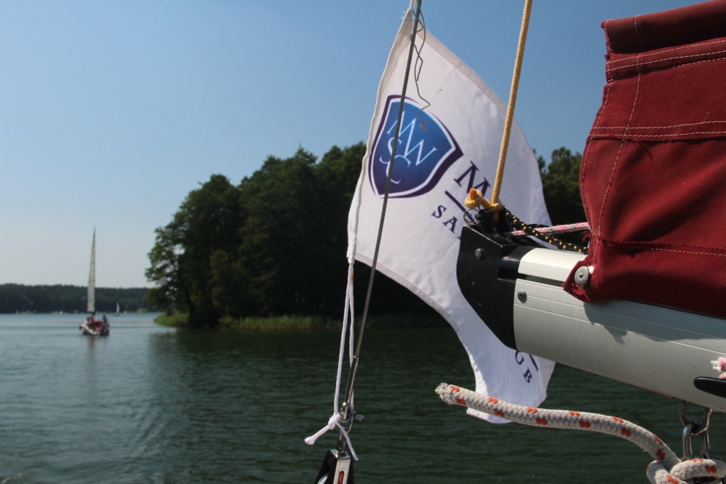 Główny szlak był bardzo zatłoczony – mnóstwo żeglarzy pływa w weekend, natomiast za wyspami było mało łódek. Wiatr w porywach osiągał 5, więc żeglowało się bardzo miło. Niestety po kilkudziesięciu minutach dopłynęliśmy w okolice ośrodka AWF, gdzie ściągnęliśmy żagle i dalszą część drogi pokonaliśmy już na silniku. I tak o to w Pięknej Górze zakończył się nasz krótki rejs. Tu także pożegnaliśmy się z Czarną Łapą.